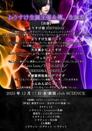 ようすけ様BIRTHDAY/ようすけ生誕バンド/天井裏からようすけ/ヴェルティア/Love Less/D・ALAEVE/SURENDRA/DESTiA/辛糖質摂取集団デブザグ/わんわんぱにっく!!!